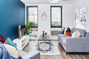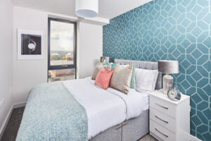 The development consists of high-spec one and two-bedroom apartments distributed around five unique blocks to create a distinctive urban village adjacent to the iconic Liverpool Waterfront. Floor-to-ceiling windows offer views across the city and River Mersey and a number of luxury facilities offer residents a premium living experience, ideal for the expanding renter population.